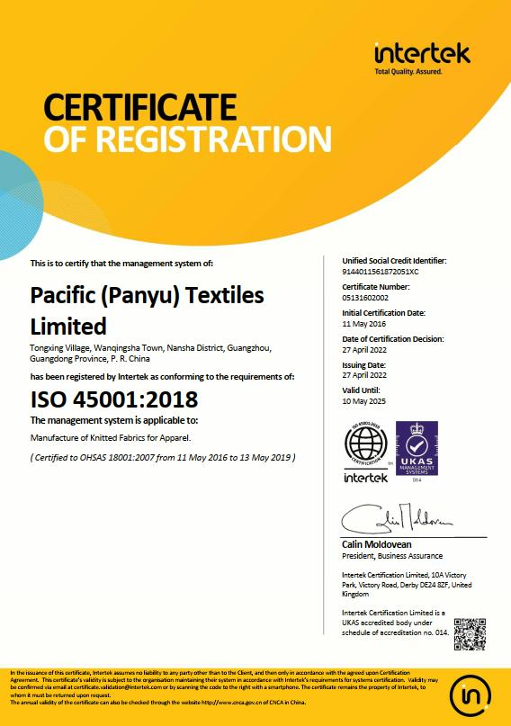 获奖单位 Pacific (Panyu) Textiles Limited